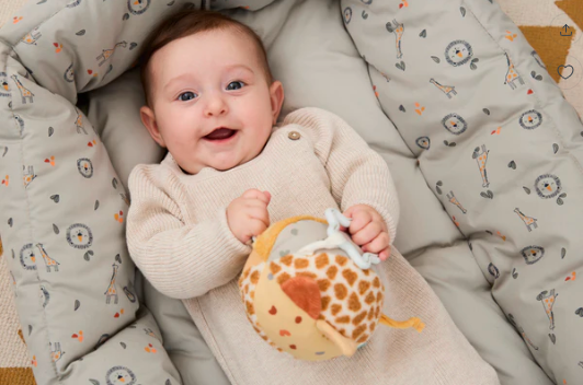 Περιλαμβάνει κουδουνίστρα που δημιουργεί ευχάριστους ήχους, ενθαρρύνοντας το αισθητηριακό παιχνίδι.