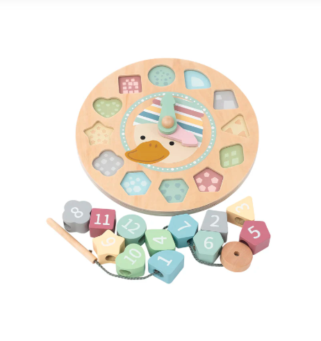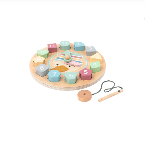 Ξύλινο εκπαιδευτικό ρολόι με χαριτωμένη πάπια που βοηθά τα παιδιά να γνωρίσουν την έννοια της ώρας.