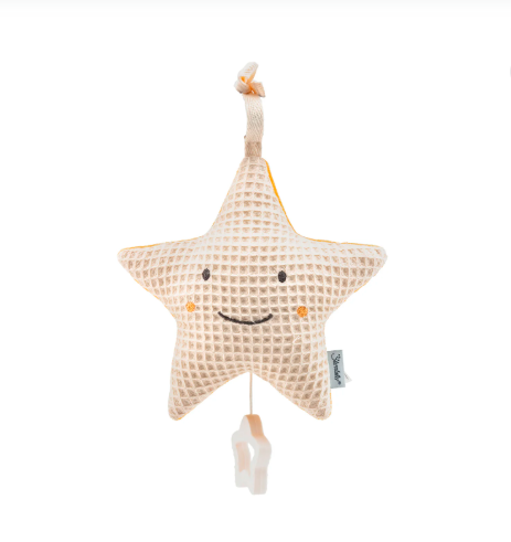 Απαλό υφασμάτινο κρεμαστό παιχνίδι σε σχήμα αστεριού που δημιουργεί μια ήρεμη και γλυκιά ατμόσφαιρα για το μωρό.