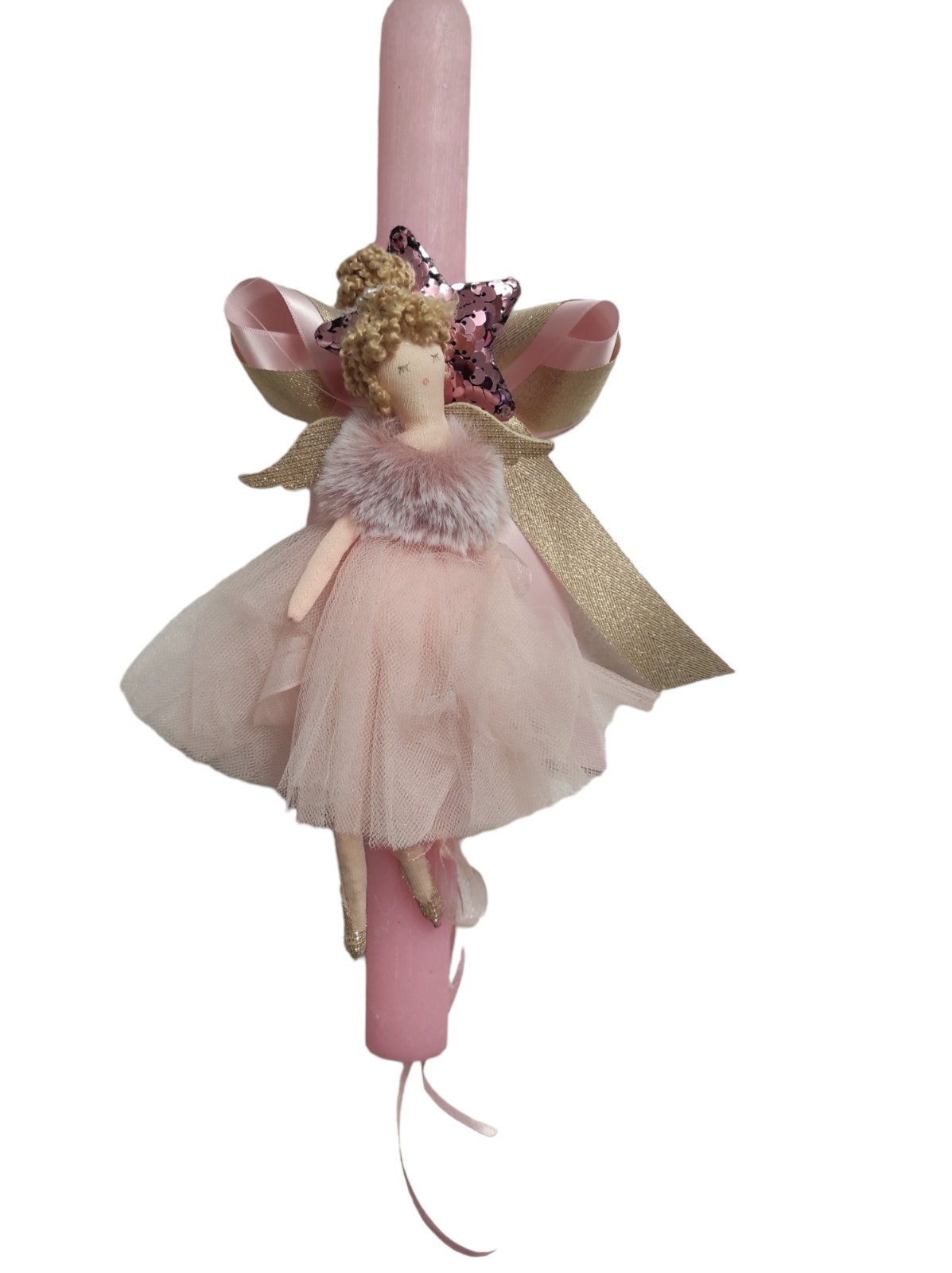 Πασχαλινή Λαμπάδα με Υφασμάτινη Νεράιδα σε Ροζ & Χρυσές Αποχρώσεις